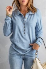 Be the first to review “Blue Fold-Over Collar Thermal Henley Top”
