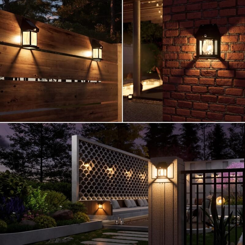 - Versatile: With the concisely, modern, stylish, and European style, the solar wall light fixture can be a great addition to your house, such as porch, patio, garage, courtyard, backyard, hallway, balcony, garden, corridor, etc.