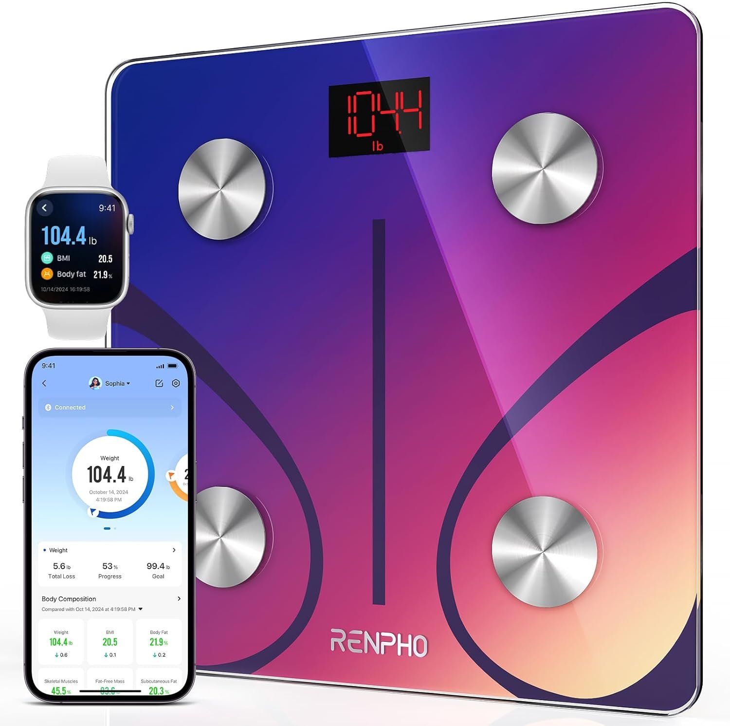 - User-friendly app. Download Renpho Health app at the App Store or Google Play, it also offers Apple Watch App (Except for Apple Watch Series 1). Renpho Health App works with Bluetooth 4.0 And above.