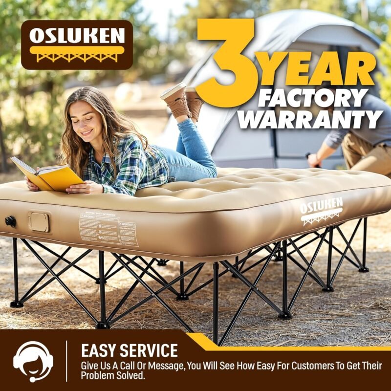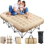 - 【Air Mattress with Frame】: Heavy-duty cross-structured pop-up frame provides firm and stable support for the queen Inflatable Bed, 500 lbs strong load capacity and air mattress remains firm without sagging. Queen blow up mattress with frame Dimensions: 80″x60″x25.4″, provides you with a spacious and comfortable sleeping experience!