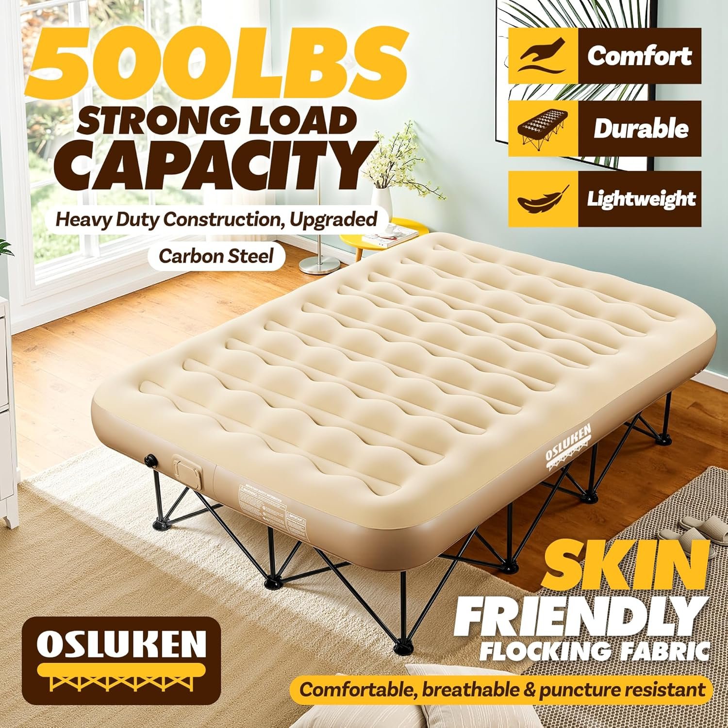 - 【Soft Flocking Surface】: The surface of the blow up mattress with frame is made of skin-friendly flocking fabric, which is soft, cozy and breathable, allowing you to sleep soundly all night long. Wavy curved design provides better body support, it redefines the sleeping experience of air mattress with frame.