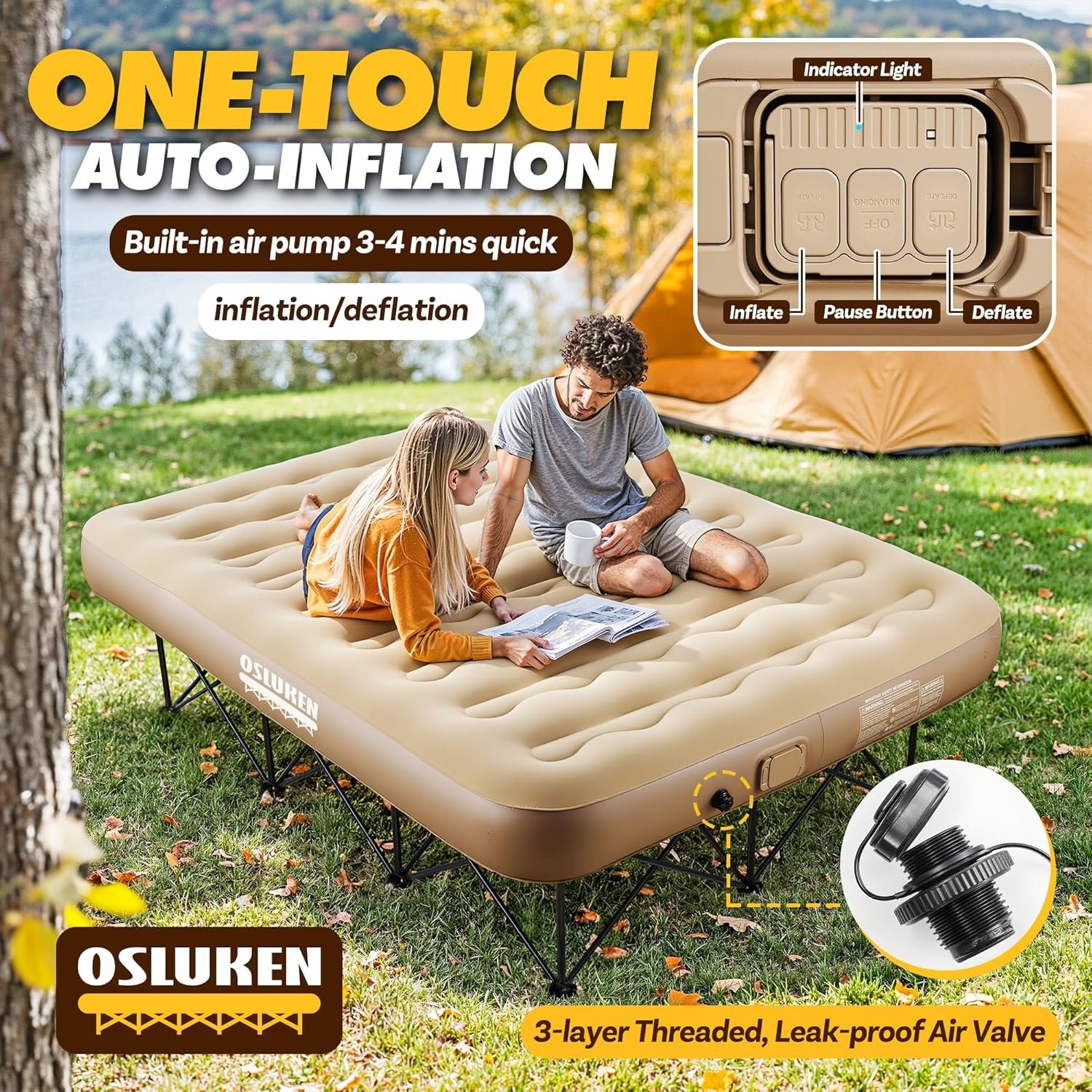 - 【Airbed with Built in Pump】: One-touch auto-inflate/deflate, quick auto-inflate and deflate in 3-4 minutes, convenient and hassle-free. Setting up a self inflating air mattress has never been easier and is ideal for quickly and easily hosting your guests.